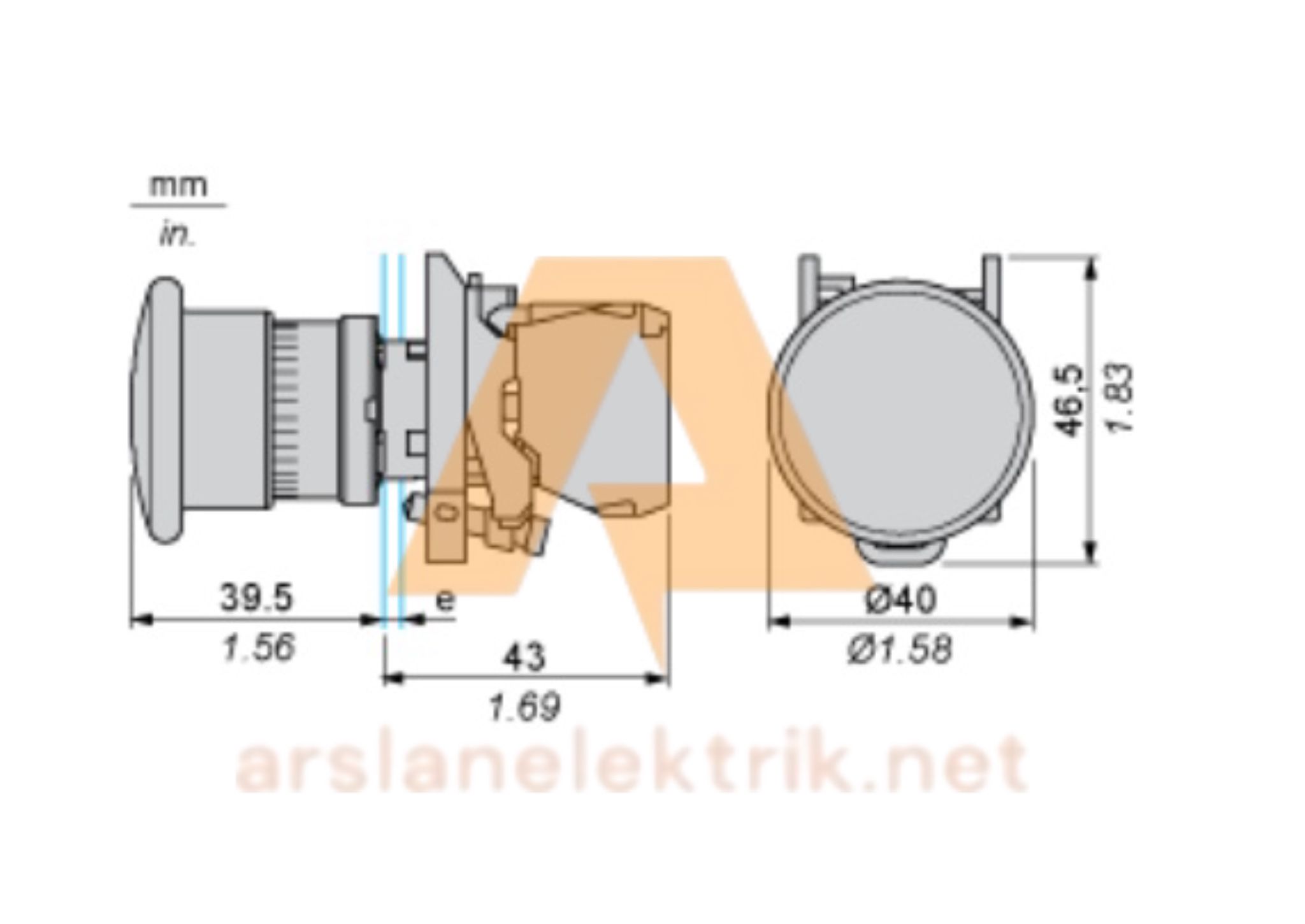 XB4-BS8442 Acil Durdurma Butonu 40 mm Mantar Kafalı Kalıcılı ,Metal Seri