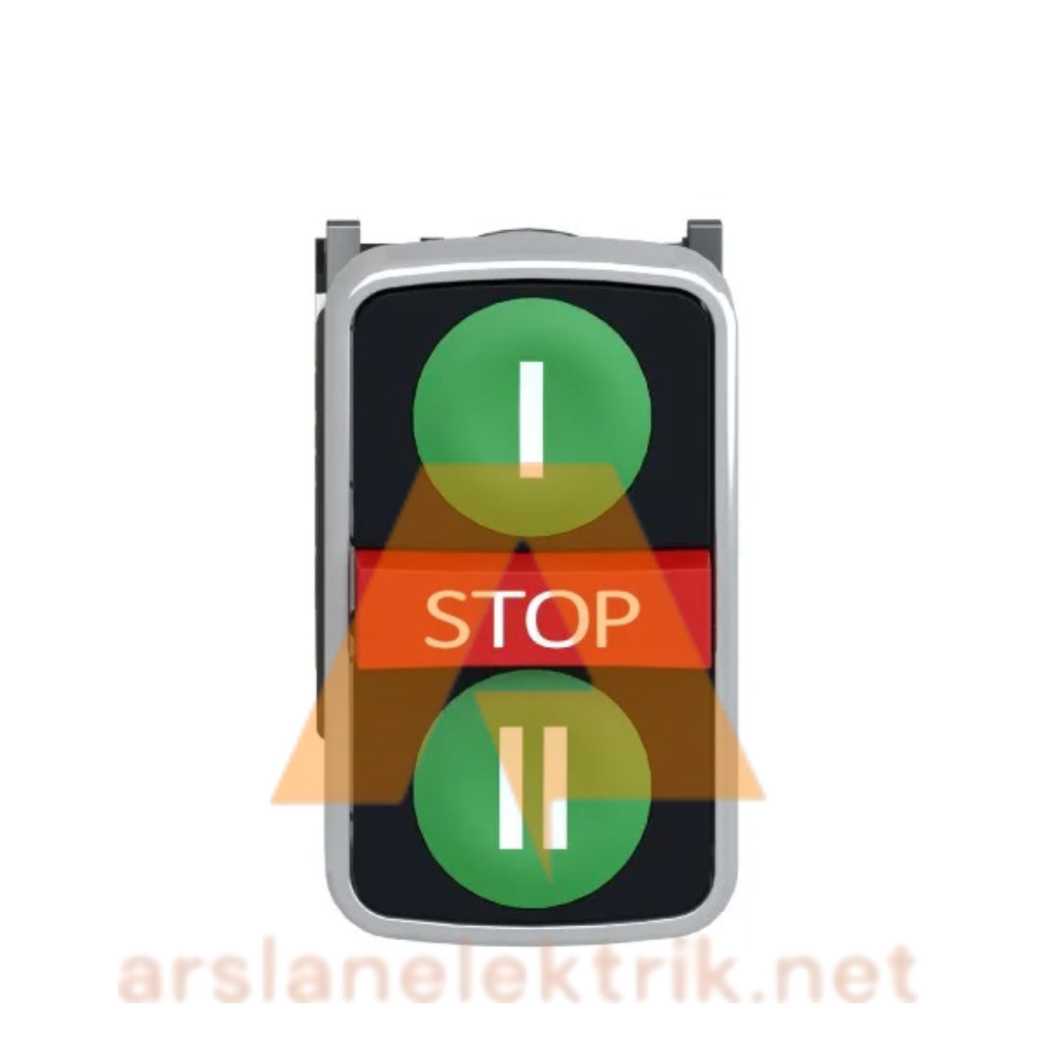Yeşil sıva altı/kırmızı çıkık/yeşil sıva altı üç başlklı basmalı düğme Ø22 1NA+1NK+1NA