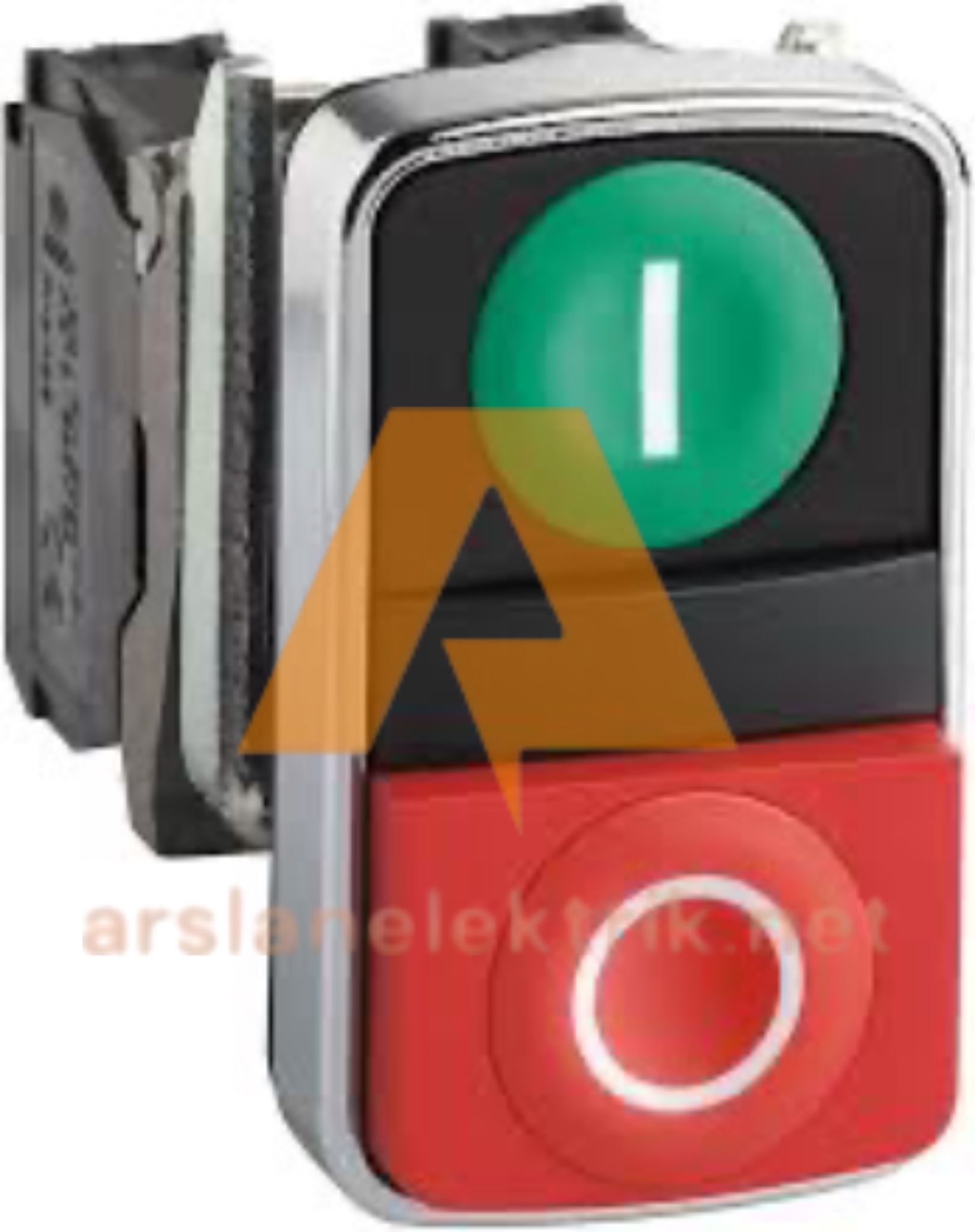 Yeşil sıva altı/kırmızı çıkık ışıklı çift başlıklı Buton Ø22 1NA+1NK 24V.