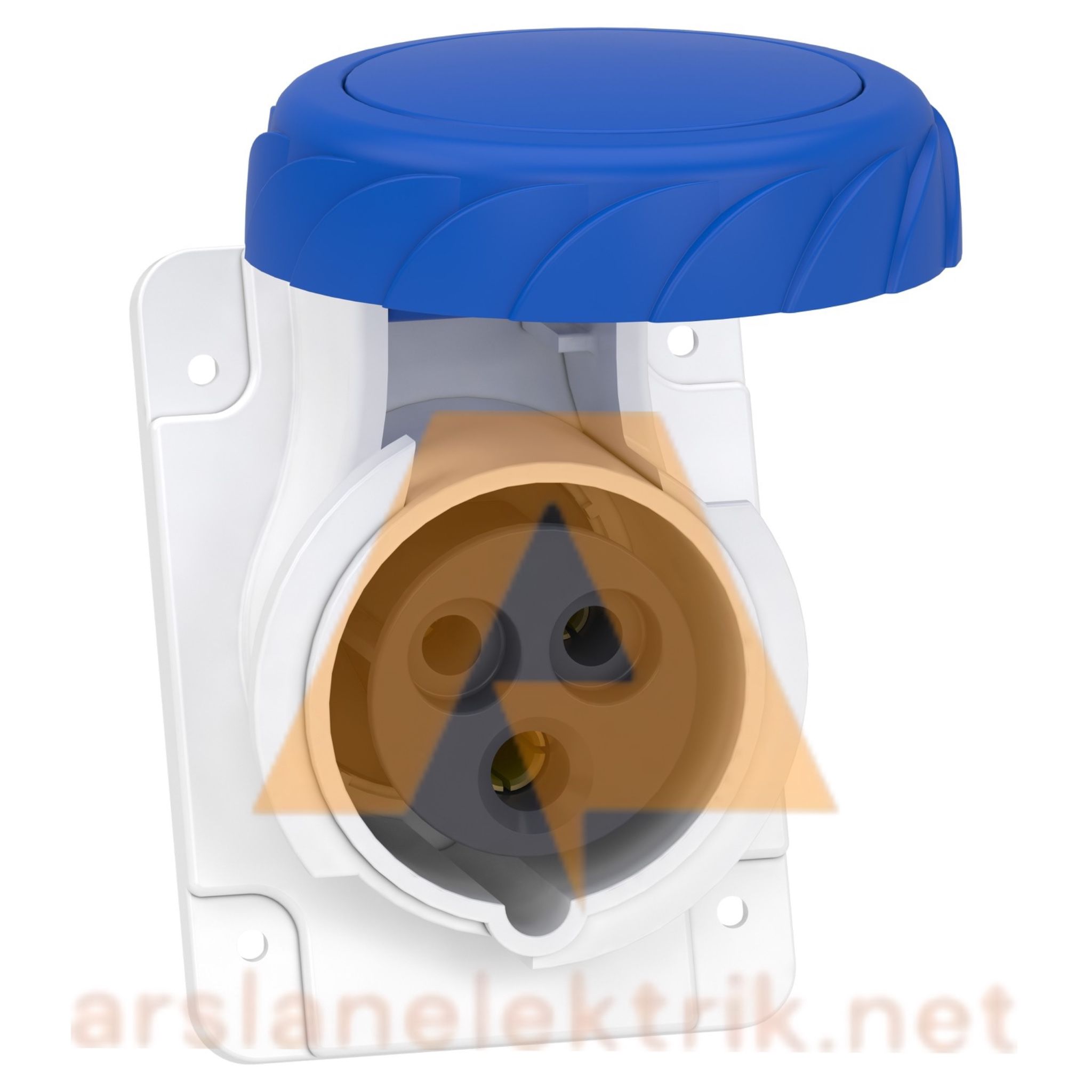 Hızlı bağlantıya sahip bu Pratika endüstriyel priz açılı panel montajlıdır 2P+E kutuplu, anma akımı 32A ve çalışma gerilimi 230VAC Taban plaka ebatları (A) 95mm x (Y) 100mm Koruma derecesi IP67 ve IK08 Yangın dayanıklılığı 850°C Kablo girişleri esnek veya sert kablolar içindir 32A’daki kabloların kesiti 2.5mm² ila 6mm² Priz rengi açık gri (RAL 7035) ile çalışma geriliminin kolay tanımlanması için mavidir