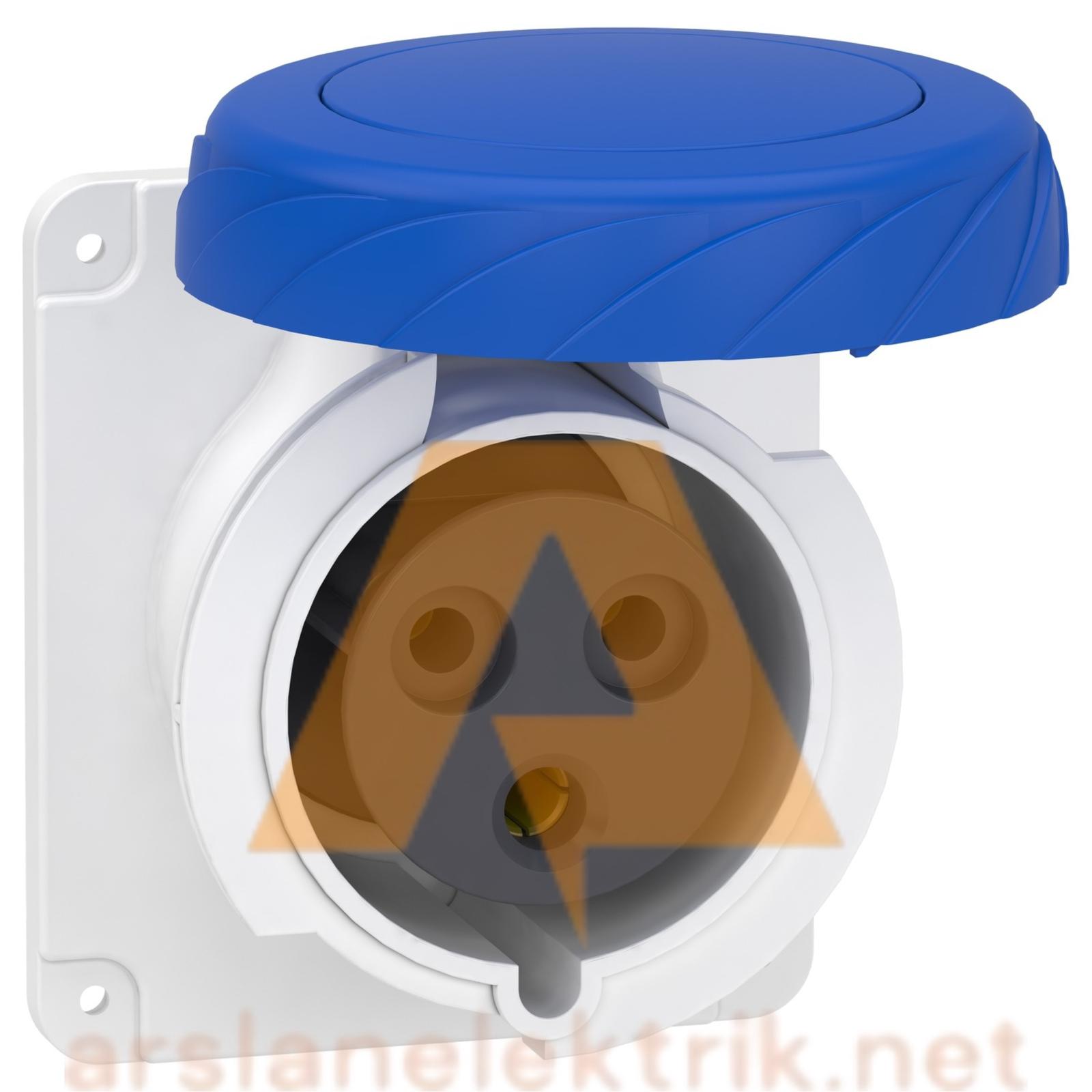 Hızlı bağlantı bağlantılı bu Pratika endüstriyel priz düz panel montajlıdır. 2P+E kutuplu olup, anma akımı 32A, çalışma gerilimi 230VAC’dir. Taban plakasının boyutları (G) 95mm x (Y) 100mm’dir. Koruma derecesi IP67 ve IK08’dir. Yangın dayanımı 850°C’dir. Kablo girişleri esnek veya sert kablolar içindir. 32A’daki kabloların kesiti 2,5mm² ile 6mm² arasındadır. Soketin rengi açık gri (RAL 7035) olup, mavi renk çalışma voltajının kolayca anlaşılmasını sağlar.