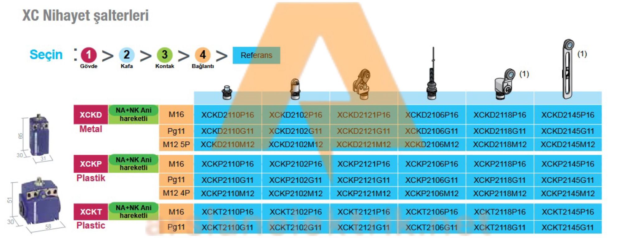 Kontak Yapısı Ani Hareketli, 1 NK+1 NA 2 Kutuplu